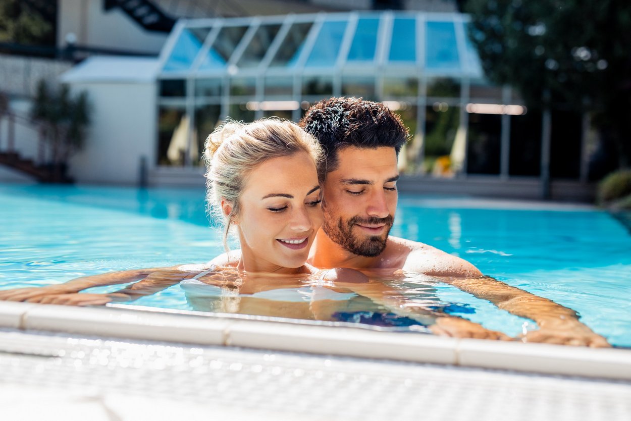 Wellnessbereich mit Innen- und Außenpool sowie Whirlpool